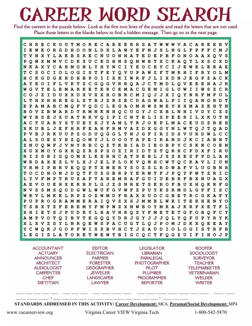 Finding free download word search printable careers can be effortless and accessible, you can use the search engine and visit websites that specialize in offering free assets. Be careful about the websites you visit, choose esteemed sites that offer high-quality, accurate downloads.